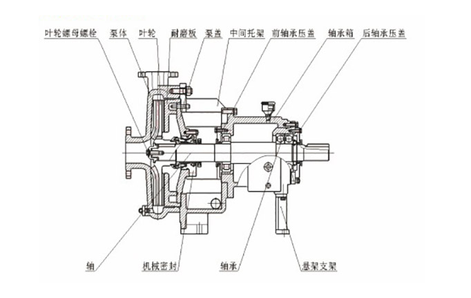 5)葉輪輪毂與泵(bèng)蓋間有較大的(de)錐形空間,防止(zhi)固相介質進入(ru)軸封。